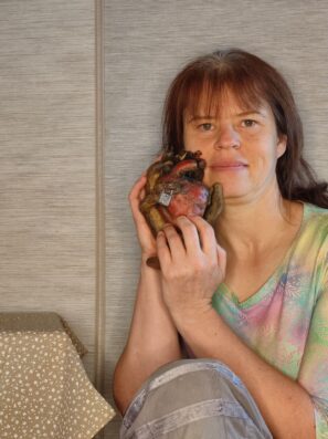 Moje sochy jsou inspirované životem a hlubokou symbolikou. Ráda ztvárňuji ruce v různých polohách, často s netradičními předměty. Kombinuji keramiku s dřevem, kovem, minerály nebo kůží. Nedílnou součástí mé tvorby jsou také plastiky svatých a netradičně pojaté liturgické předměty, jako je menora či ostensoria.